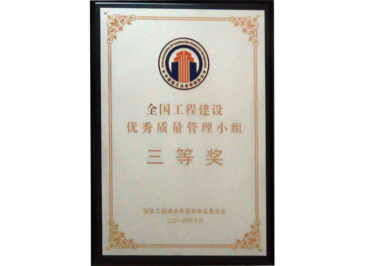 全國工程建設優(yōu)秀質量管理小組三等獎